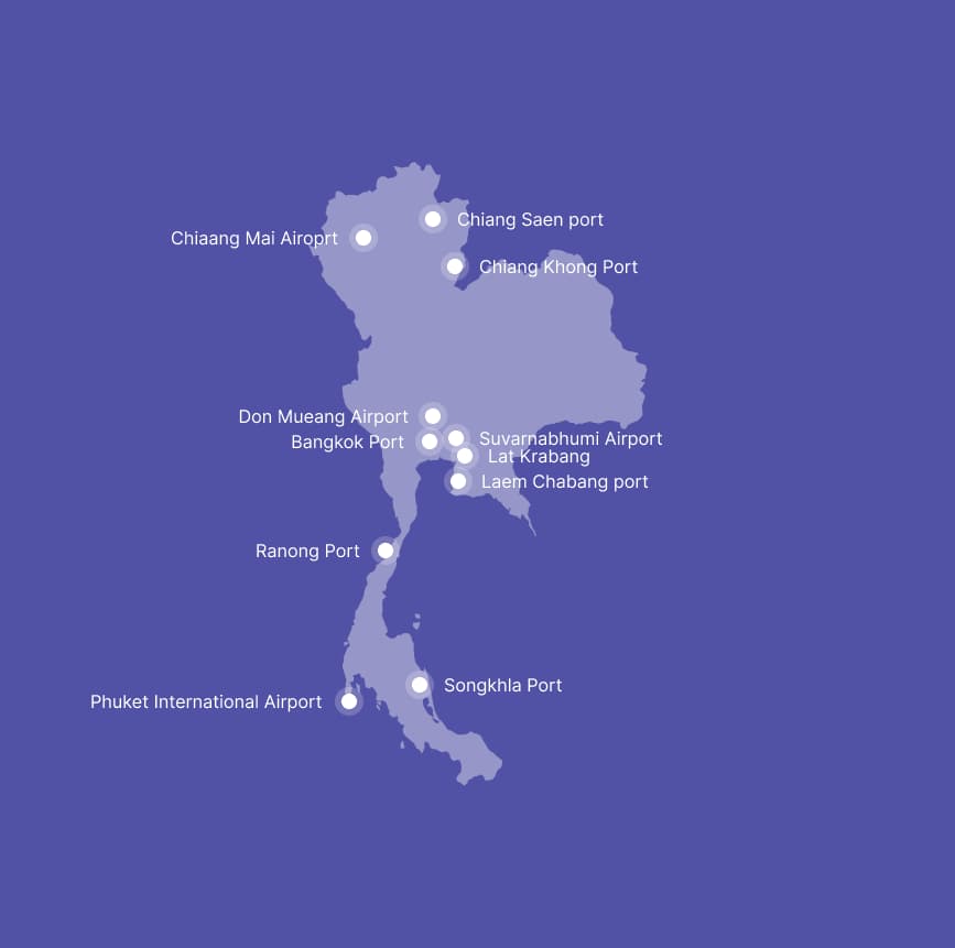 Swift Cargo работает через крупнейшие международные морские порты и аэропорты Таиланда. Для переезда или отправки грузов мы предлагаем морскую и авиадоставку через следующие пункты:
