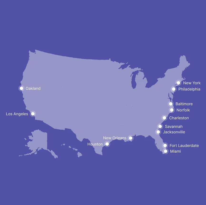 Swift Cargo can route through major international gateways across the USA. Depending on your origin and destination, we can support sea freight and air freight options to common entry points listed below.